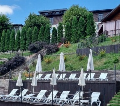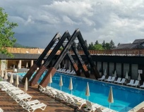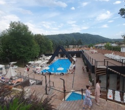 В этой гостинице есть бассейн с минеральной водой с подогревом под открытым небом и второй бассейн с обычной водой, тоже с подогревом, но немного прохладнее. За такой эксклюзив - однозначно пять звёзд. Номера стандартные с хорошим ремонтом. Завтраки хорошие