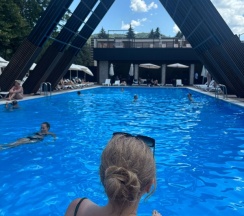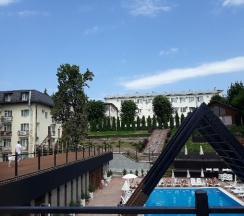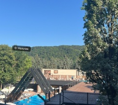 Замечательный отель! Нам понравилось расположение: улочка с одними санаториями, машин мало, воздух чистый, рядом горы. Недалеко начинается парк (огромный, ухоженный, можно гулять целыми днями. Есть минеральный бювет и точка по продаже экскурсий). Персонал очень приветливый. Номера приличные. Слабоватое освещение только на этажах. Территория отеля очень красивая и ухоженная. Три бассейна и один маленький на веранде для взрослых. Мы были в конце октября и работал один бассейн, он хоть и с подогревом, но прохладно 26 градусов, пару раз только искупались. Небольшая детская площадка. Завтраки хорошие, шведский стол. Очень вкусно готовят в кафе отеля, цены доступные, но если приехал на пару недель то накладно конечно. Столовых рядом нет, только в центре города нашли.