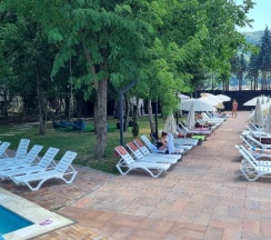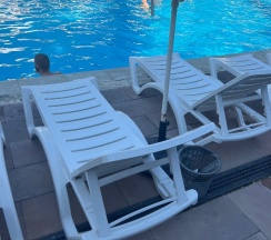 Шикарная зона отддыха у бассейна! Достаточное количество лежаков, выдают полотенца, халаты. 3 бассейна, 1 из них детский лягушатник. Вода чистая, теплая. Есть зонты, все рабочее. У бассейна работает кафе, можно заказать пиццу, снэки, напитки, даже первое. Приносят столики к шезлонгу. Ценны приемлимые. Работают туалеты, все чистое с приятным запахом.