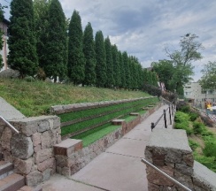 Находится в тихом месте, но в то же время рядом с огромным парком города - можно погулять, все в пешей доступности.