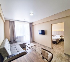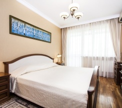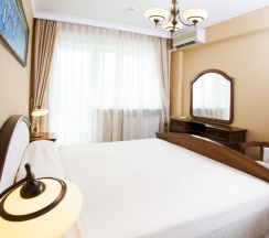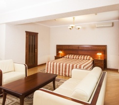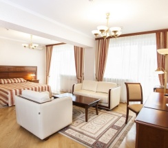 2-х комнатный просторный номер "Люкс": гостиная, спальня, ванная комната с гидромассажной ванной (Jakuzzi), балкон.