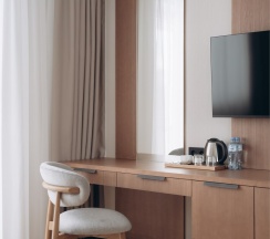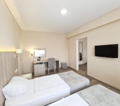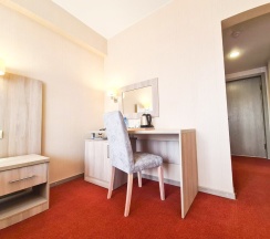 Очень хороший отель, обслуживание на высшем уровне. Уборка в номере и чистые полотенца каждый день+ бутылочки с минеральной водой. Вид на горы с балкона чудесный 😍 Завтрак на любой вкус шведский стол - это очень удобно. Хочешь каша, хлопья, яички, омлет, фрукты, овощи, всё и не перечислить, всё очень вкусно. Есть кафе ресторан , там тоже очень вкусно готовят, можно посидеть вечерком. Так же в отеле есть бассейн. Каждый день туда ходили🥰. Есть экскурсии от отеля цены очень приятные. В общем об этом месте только теплые воспоминания спасибо вам большое 🫶🏻 ( некоторые пишут про старую мебель в отеле мы жили на 5 этаже, там ещё не было ремонта, но нас это ни капли не смутило, нам понравилось, какой то особый вайб в этих номерах, тепло и уютно. + мы ехали не в номере сидеть, а гулять и наполняться новыми впечатлениями, номер использовался в качестве ночлега и что бы привести себя в порядок, ванная и туалет в номере👌 в общем нам было уютно в этом, как говорят комментаторы «номере времен ссср» )