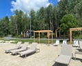 Территорию облагораживают, есть лежаки, чистый песочек, мангальные зоны как у реки так и в зеленой зоне, где великолепные сосны. Уборная большая и чистая, есть душ при выходе с пляжа для ног.