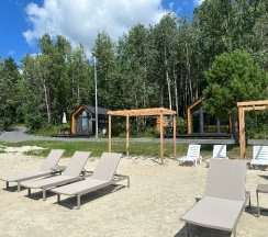 Классное место. Небольшая территория с беседками, пляжем и детским веревочным парком, все чистенько и уютно. Снимали барнхаус, внутри здорово, как в современной квартире. Цены тоже порадовали. Рекомендую