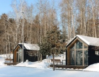 Красивая территория, небольшое озеро, летом можно позагарать. Мы арендовали большой домик с баней. В домике есть все самое необходимое для отдыха с ночевой.