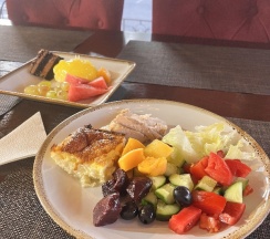 На завтраке большой ассортимент. На мой вкус сладкоежки сырники, сок и выпечка оказались как никогда кстати.