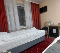 Вход в гостиницу не сразу нашел, фасад слабый по архитектуре, однако внутри все очень хорошо. Номер на 5 этаже, хороший бокс. Душевая внутри бокса на два номера, туалет тоже. Внутри номера хорошо и чтсто, телевизор работает спокойно без проблем