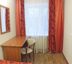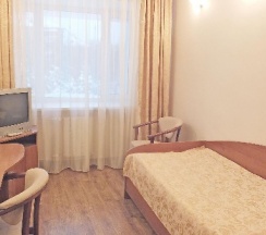 Для временного проживания очень даже комфортная. Номер попался чистый, все удобства в номере. Единственное не было фена, тапочек и халата. Обычно во всех гостиницах есть.