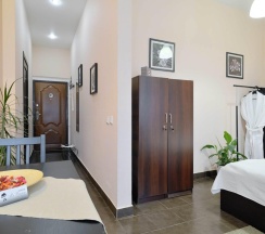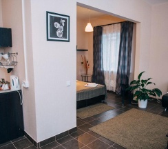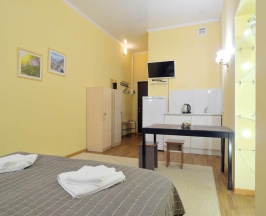 Номер - улучшенный стандарт (с раковиной, столовыми приборами, рабочей поверхностью для нарезки продуктов, холодильником, чайником). Все для того, чтобы чувствовать себя как дома!