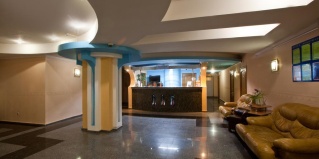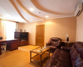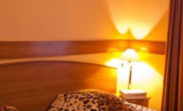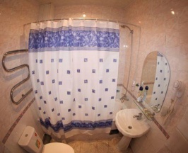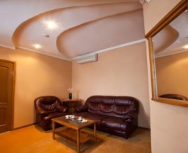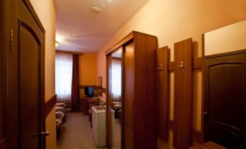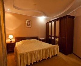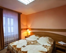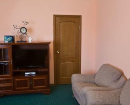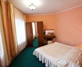 Оснащение номера: двуспальная кровать, тумбочка, стол, телефон с выходом на город, телевизор, холодильник, зеркало, светильники.