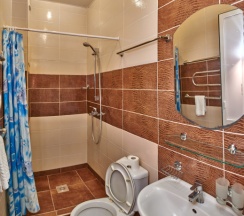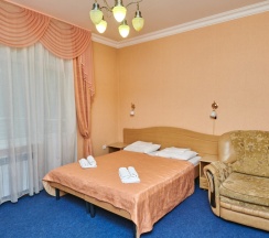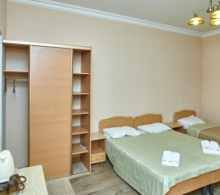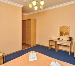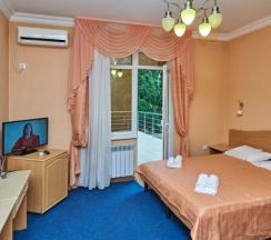 Комфортный двухместный номер с балконом ,кровати разделяются,есть доп.место кресло-кровать,в номере имеется холодильник,кондиционер,электрочайник,набор посуды на двух персон,ТВ,душ/туалет в номере,шкаф,две тумбы прикроватные,туалетный столик с зеркалом.