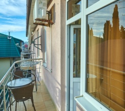 Хороший гостевой дом в данном месте имеритинки! Есть все необходимое в номере: ванные принадлежности, фен, холодильник, тв, чайник, кружки, ложки, тарелки (никакой общей кухни и для меня это +), приветливая девушка на ресепшене, по бронированию через тбанк ведут обратную связь и заселили нас раньше, за что отлельная благодарность! Приятная мелочь - это включенный завтрак в соседнем кафе👍 из нюансов - продавленные матрасы сдвинутых рядом односпальных кроватей, не решил проблему брошенный поверх тонкий односпальный матрас. А так все очень даже неплохо за символические деньги, все рядом и главное море😊