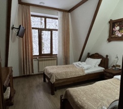 Милая маленькая гостиница, оформленная под охотничий домик недалеко от города, но в лесу! Чудесные виды из окна, вкусные завтраки! Чисто!