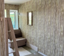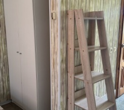 Номер очень уютный, расположен на втором этаже. В номере две кровати — двуспальная и односпальная. Также есть чайник, столовые приборы, холодильник и выход на собственную веранду.
