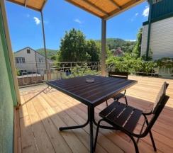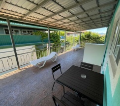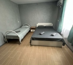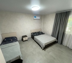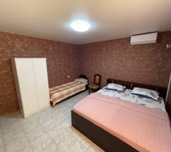 Уютный и комфортный гостевой дом! В номере был свежий ремонт, видно что домом занимаются! Отдыхали с мужем и с ребенком около недели. Бассейн с подогревом, территория большая, даже качели есть!! Готовили на кухне, для готовки и еды есть вся посуда, есть мангал на территории. Рядом с домом есть столовые - вкусно и недорого, так как чуть дальше от пляжа. Хозяин Александр всегда шел на встречу, в главном корпусе можно попросить свежесваренный кофе, утюг, фен! Вообщем приедем еще!