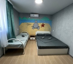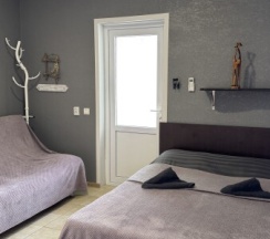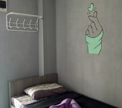 Стандартный двухместный номер с дополнительным местом для ребёнка или взрослого. В номере есть душ и туалет. Он расположен на первом этаже, рядом с выходом на общую кухню.