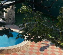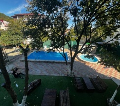 Уютный и комфортный гостевой дом! В номере был свежий ремонт, видно что домом занимаются! Отдыхали с мужем и с ребенком около недели. Бассейн с подогревом, территория большая, даже качели есть!! Готовили на кухне, для готовки и еды есть вся посуда, есть мангал на территории. Рядом с домом есть столовые - вкусно и недорого, так как чуть дальше от пляжа. Хозяин Александр всегда шел на встречу, в главном корпусе можно попросить свежесваренный кофе, утюг, фен! Вообщем приедем еще!