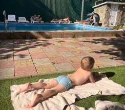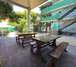 Место супер, во дворе бассейн, много зелени, виноград, столовая, места для отдыха (столики, лежаки). Приехали на три дня, потом продлили, потому что место шикарное. До пляжа 10-15 минут, можно уйти на дикий пляж, можно на центральный. Персонал все отзывчивые, приветливые, все подскажут, расскажут. Советуем однозначно!!!