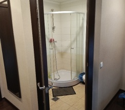 В душевой явная проблема с горячей водой, долго ждёшь и она не смешивается с холодной, проблема с дверцами(они сломаны). Телевизор не работает и очень слышно гостей с соседних комнат.