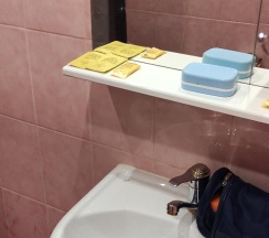 -Наличие кухонных принадлежностей и небольшой комплимент в виде чая/кофе приятно порадовал.(мелочь,а приятно);