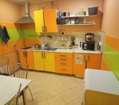 5. Есть общая кухня, большой общий холодильник, микроволновка, правда дышит она на ладан, ну да ладно, мультиварка, печка, стиральная машина, стирка за деньги. Также на кухне имеется вся необходимая посуда, чистоты на кухне нет, но это уже вопросы к постояльцам, которые не убирают за собой, по большей части мужчины, что с них взять.