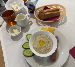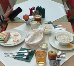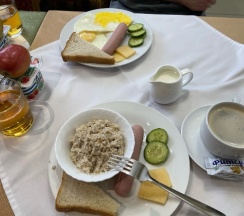 Хорошая гостиница, очень вежливый, внимательный и понимающий персонал, это особенно важно, когда ты с дороги и сильно устал) в гостинице очень чисто, в номерах хорошая мебель, идеальная чистота, есть все необходимые гигиенические принадлежности, очень удобные матрацы, две подушки на выбор) так же очень удобные, хорошее постельное белье, большое теплое одеяло) в стоимость номера включен завтрак, позавтракать можно с 7.00, на завтрак можно выбрать одно из четырех блюд, все вкусно, стоимость стандартного номера с двухместным размещением 3400, возле гостиницы можно припарковать автомобиль, территория парковки находится под видеонаблюдением.