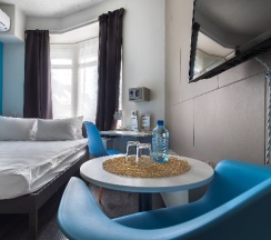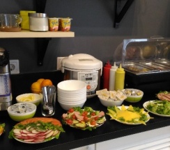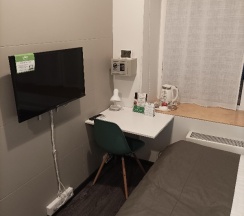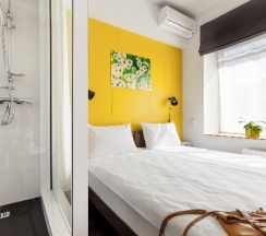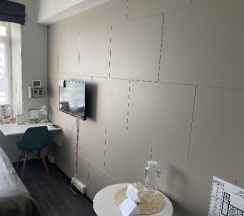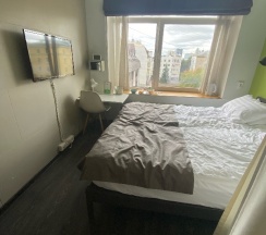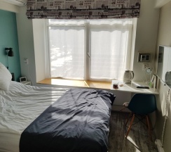 В крохотный номер уместили все необходимое. Отличные завтраки, хоть и шведский стол совсем небольшой, но разнообразный. Круглосуточный доступ к чаю/кофе, печеньки. Постелите подушечки на деревянные стулья в кухне, очень уж они неудобные.