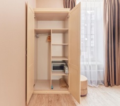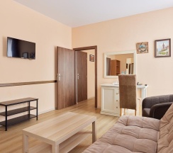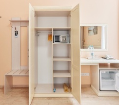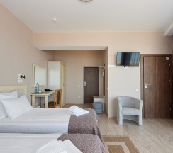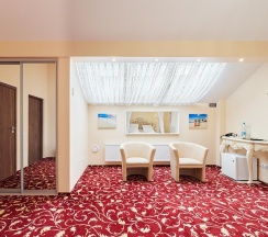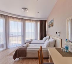 - комфортные кровати, письменный стол, кресла, диван, телевизор с плоским экраном, кабельные каналы, холодильник, wi-fi, питьевая вода (пополняется ежедневно),