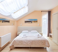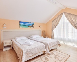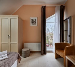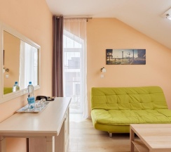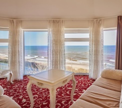 Из номера открывается великолепный панорамный вид на Балтийское море. Этот номер позволяет выбрать удобный вариант размещения: две односпальные кровати или одну двуспальную.
