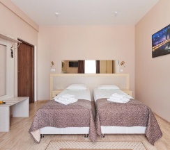 В уютном номере категории стандарт с видом на море доступны два варианта размещения на выбор: одна двуспальная кровать или две односпальные кровати. Площадь номера - 23 кв.м.