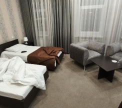 Гостиница расположена в спортивном комплексе. Огромный номер с больший прихожей, свой санузел. Чисто, всё необходимое есть. Есть парковка. Завтрак вкусный. Персонал доброжелательный.