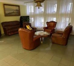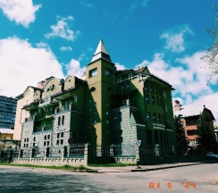 Трехзвездочный отель В номере санузел (ванна, биде, унитаз, раковина), холодильник, телевизор, двухспальная кровать, балкон, телефон За отдельную плату бильярд, сауна и бассейн Не далеко от ж/д и автовокзала