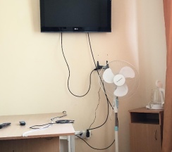 Оставались переночевать на одну ночь. За такую цену, вполне хороший номер, бронировали трёхместный. Есть кружки,ложки что очень удобно. В ванной комнате есть полотенца, разовые щётка и паста, шампунь.