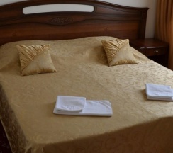 Не понравилось: Некомпетентный персонал, элементарно не соблюдается внешний вид (администратор была в джинсах и с распущенными волосами). В номере нет телефона, также не было тапочек (причём даже за доплату). В номере вроде как чисто, но все деревянные поверхности в разводах, стены затертые. Кровать не двуспальная, просто положили 2 матраса, между которыми была приличная щель, спать вдвоём не очень удобно. Простынь очень маленькая, постоянно скатывалась на пол.