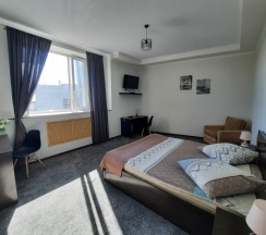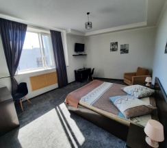 Большой двухкомнатный комфортабельный номер, незаменим для работы и проживания 2-4 гостей.
