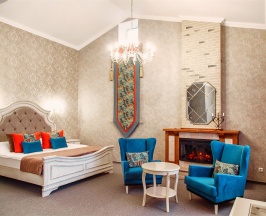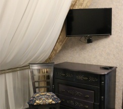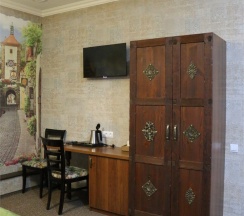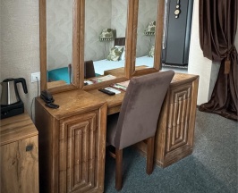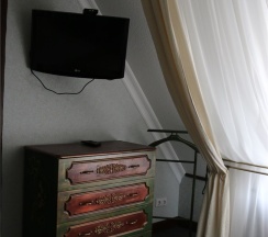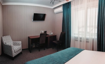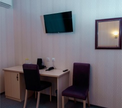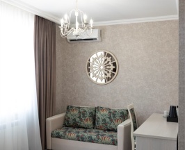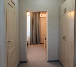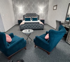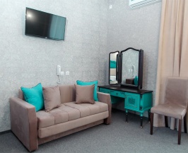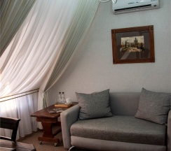 Номер категории полулюкс выполненный в светлых тонах. Площадь номера 26кв.м. Номер располагается на 2 этаже нового корпуса бутик отеля. В номере большая кровать 160*200см .В номере мини-холодильник ,телевизор ,сплит система, чайная станция с чаем и кофе, бутилированная вода. Просторная ванная комната укомплектована туалетно-косметическими принадлежностями ,халатами и тапочками . В стоимость номера включен континентальный завтрак по меню, охраняемая парковка под видеонаблюдением