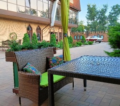 Отличное место! Получили массу удовольствия от прибывания. Бронировали на одну ночь, как промежуточный ночлег/отдых в дальней дороге. Территория большая, ухоженная, отель действительно замок. Охраняемая парковка. Номер просторный, чистый, бельё и полотенца белоснежные, есть всё необходимое (фен, полностью все принадлежности для умывания, тапочки, чайник, кофе, чай, холодильник, телевизор). Отличный жёсткий матрас, светонепроницаемые шторы, соседей не слышали. Интерьер номера произведение искусства. Ресторан - это отдельная тема, еда просто превосходная!!! Всем советую попробовать нежный шашлык из шеи, вкуснее я нигде шашлыка не ела. Средний чек в ресторане составит примерно 1200. Завтрак входит в стоимость, порции большие, одно блюдо на выбор, кухня там огонь!