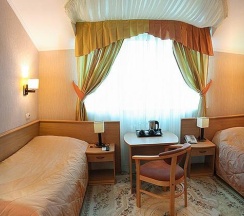 В номере категории "Сингл" есть телефон (с выходом на междугороднюю и международную связь), телевизор с дистанционным управлением и возможностью просмотра 14 каналов, мини-холодильник, туалетный столик с изящным стульчиком, тумбочка возле кровати, бра, небольшой письменный столик, графин для напитков и 2 стакана, а также чайник для кипячения воды. Также каждый номер оборудован мини-гладильной.
