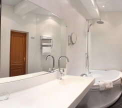 Номер категории «Люкс», общей площадью 49 кв.м. Номер оформлен в пастельных тонах и состоит из двух комнат: спальной комнаты и гостиной/кабинета, а также ванной комнаты. В спальной комнате – двуспальная кровать, в гостиной – расположена рабочая зона и диван для отдыха, имеется кухонное оборудование. В ванной комнате – джакузи. Светонепроницаемые шторы обеспечат комфорт, тишину, уют и спокойный отдых. Система кондиционирования воздуха обеспечит комфортную температуру в летний период времени.