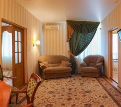 Номер категории «Люкс», общей площадью 42,9 кв.м. Оформлен в тёплых тонах и состоит из двух жилых комнат, холла и ванной комнаты. Светонепроницаемые шторы обеспечат комфорт, тишину, уют и спокойный отдых. Система кондиционирования воздуха обеспечит комфортную температуру в летний период времени. Имеется кухонное оборудование.