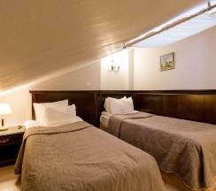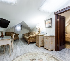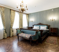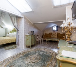 Двухкомнатные номера с эксклюзивной мебелью и предметами антиквариата. Каждый номер выполнен в уникальном и неповторимом стиле.