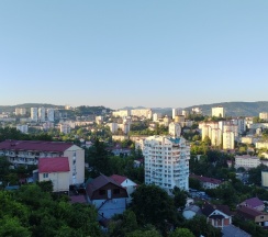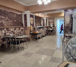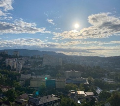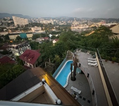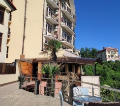 Отличный отель! Здесь есть все для незабываемого отдыха. Завтрак шведский стол, где есть и каши и вторые блюда на выбор. Творог, яйца, отлет, блинчики, чаи и кофе, соки, молоко, сметанка, соус, сгущенка, свежие овощо, печеньки. Все свежее и вкусное. Бассейн всегда чистый. Есть зона барбекю за символическую цену. Терраса с потрясающим видом на город и горы. Номера чистые, уютные. Уборка каждый день, бельё и полотенца меняют регулярно. Шампунь, мыло, гель для душа и бумагу обновляют по мере использования. Персонал потрясающий. Ближайший пляж находится не близко и маловат поэтому рекомендую проехать немного на общественном транспорте до пляжа Ривьера, где намного уютнее и больше места, и рядом есть пляж Остров, где людей намного меньше. Чуть левее от отеля есть Пяторочка. Также рядом есть кафе Мангальчик для любителей потрясающей шаурмы, самсы и шашлычков. Магазинчиков мало, но они есть. Это место больше для тихого отдыха, но оно того стоит. Рекомендую данный отель.