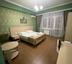 Прекрасный отель для тихого семейного отдыха! Проживали в период с 30.08 по 11.09.2024, остались очень довольны! Цена качество полностью соответствует! На территории есть бассейн, за дополнительную плату есть сауна и мануальная зона. Каждый день уборка номеров, полотенца и постельное меняют раз в 3 дня, завтраки довольно разнообразные, единственный минус совсем не было фруктов ) на юге все таки хочется фрукты) в номерах кондиционер, фен, чайные наборы, гигиенические принадлежности все имеется . Вид из номера на город и горы, ночью особенно красиво! Отдельно хочется отметить персонал! Очень приветливые и вежливые ребята, готовые прийти на помощь в любой момент и ответить на все интересующиеся вопросы! Рядом с отелем магазины, кафе, до ближайшего пляжа минут 15-20 пешком, (1,5 км), спускаться с горки, наверх с пляжа можно ездить на местном автобусе- 50 руб с человека. Отдыхом очень довольны, с удовольствием вернемся опять и рекомендуем к посещению!