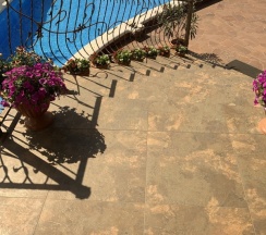 Бассейн чистый, есть душ и туалетная комната. Вокруг бассейна располагается зона отдыха для загара.