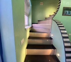 Есть все необходимое, единственно с детьми неудобно и опасно подниматься по винтовой лестнице на 3й этаж.