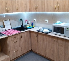 Здравствуйте. Хороший отель, есть кухня и сауна . Удобно расположен. Хороший район, всё в шаговой доступности. Спасибо.