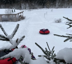 А ещё детям очень понравилось ходить на горку кататься на новых ватрушках.