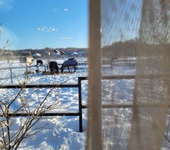 Понравилось: Идеальная чистота. Чудесный номер. Удобная кровать. Все необходимое на кухне имеется. Лошадки. Камин в номере.