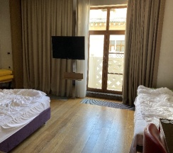 Очень уютный отель, в потрясающем месте с шикарным видом на горы! Проживали с семьей, заселились позже положенного времени. Девушка на ресепшене сначала была не довольная , потом объяснила нам что очень устала к концу дня, разъяснила всё максимально быстро и вежливо. В целом персонал очень отзывчивый и доброжелательный. Спасибо Вам за это! Завтрак очень разнообразный и очень вкусный! Номер был с балконом и шикарным видом. Порадовал уют , чистота и отсутствие посторонних запахов. Поблизости находится наш любимый ресторан Белый гриб. До него можно дойти пешком! Нам очень понравилось у Вас! Вернемся ещё 100%!!!!!