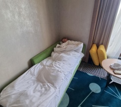Минусы: нет кофемашины, нет кофе, даже в пакетиках и если на улице дождь и вам нужен зонт, то необходимо оставить депозит и вам дадут зонтик. Странная тема, если учесть тот факт, что я живу в отеле, куда убегу с зонтом!) Еще проходят тут симпозиумы и пьянки различного происхождения, так что бывает, отмечают только в путь) Новотель фит, рядом, там тоже это в норме, знаю о чем говорю! Поэтому если нужно тише, то лучше выбрать отель Мовенпик или Долина. Вода на этаже в кулерах, забота об экологии, но думаю это просто вектор по экономии для всех отелей, даже в пятерках, хотя в Мовенпик приносят по запросу без проблем!